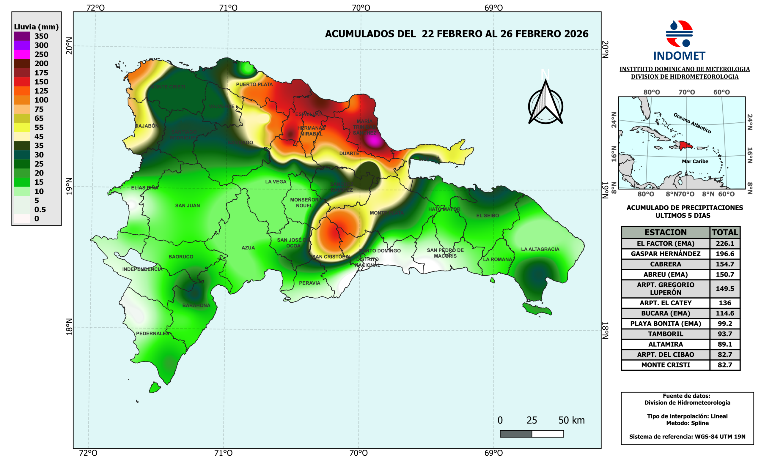Mapa de Precipitaciones en 5 días: 26 de Febrero de 2026