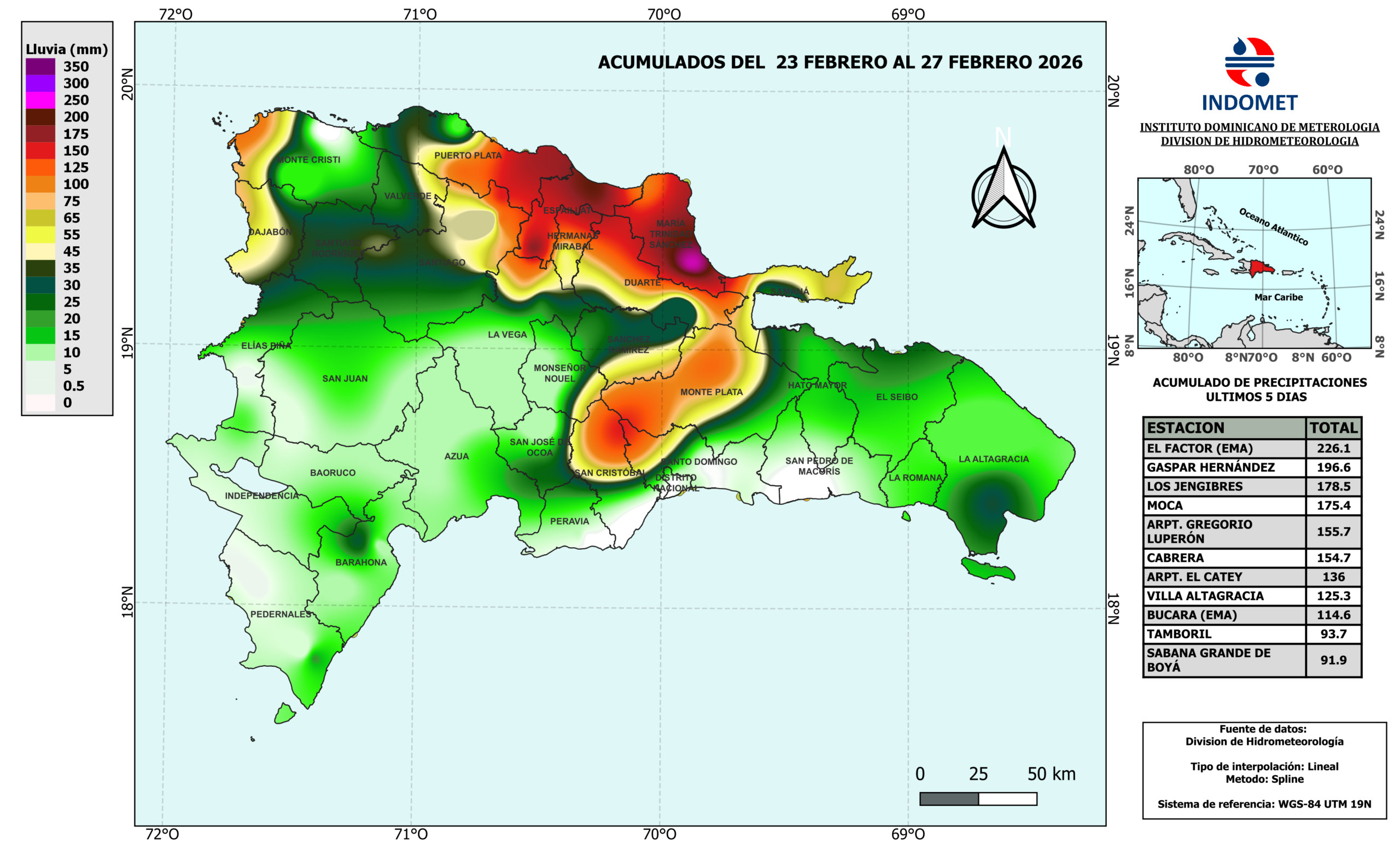 Mapa de Precipitaciones en 5 días: 27 de Febrero de 2026