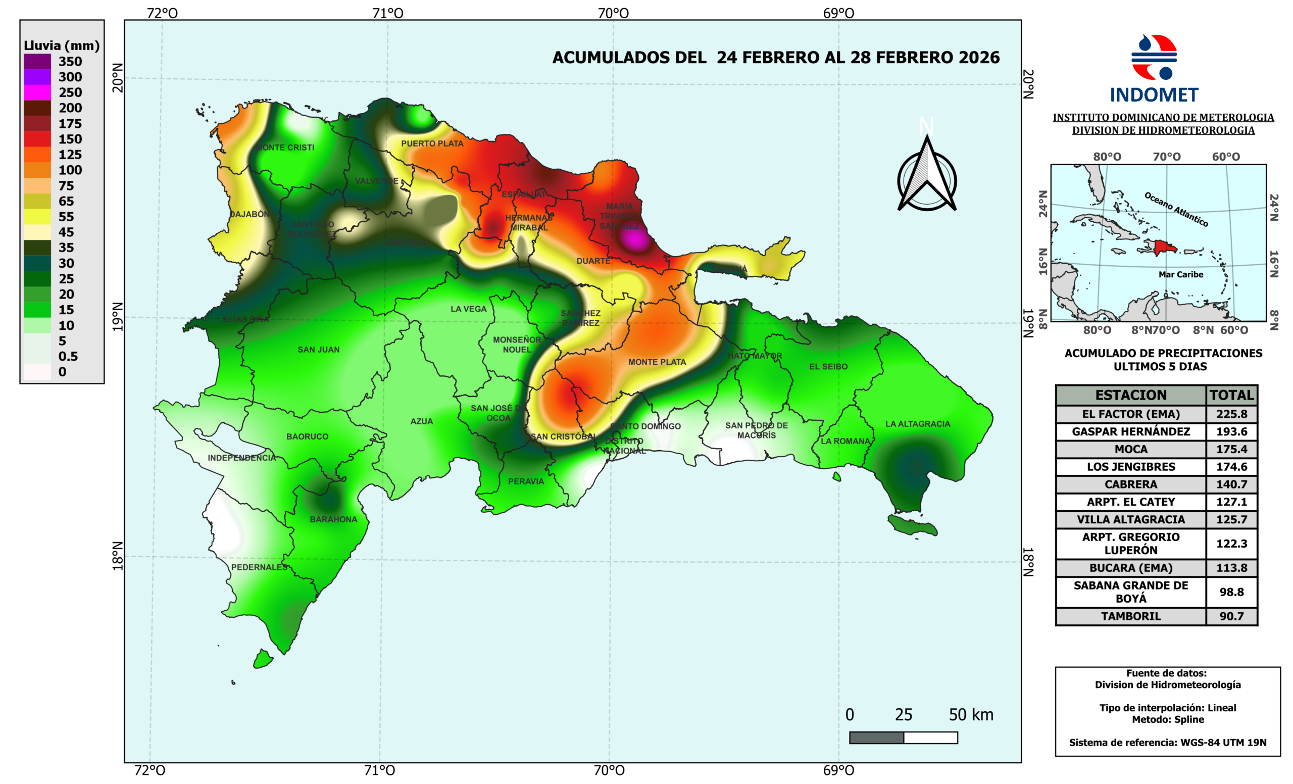 Mapa de Precipitaciones en 5 días: 28 de Febrero de 2026