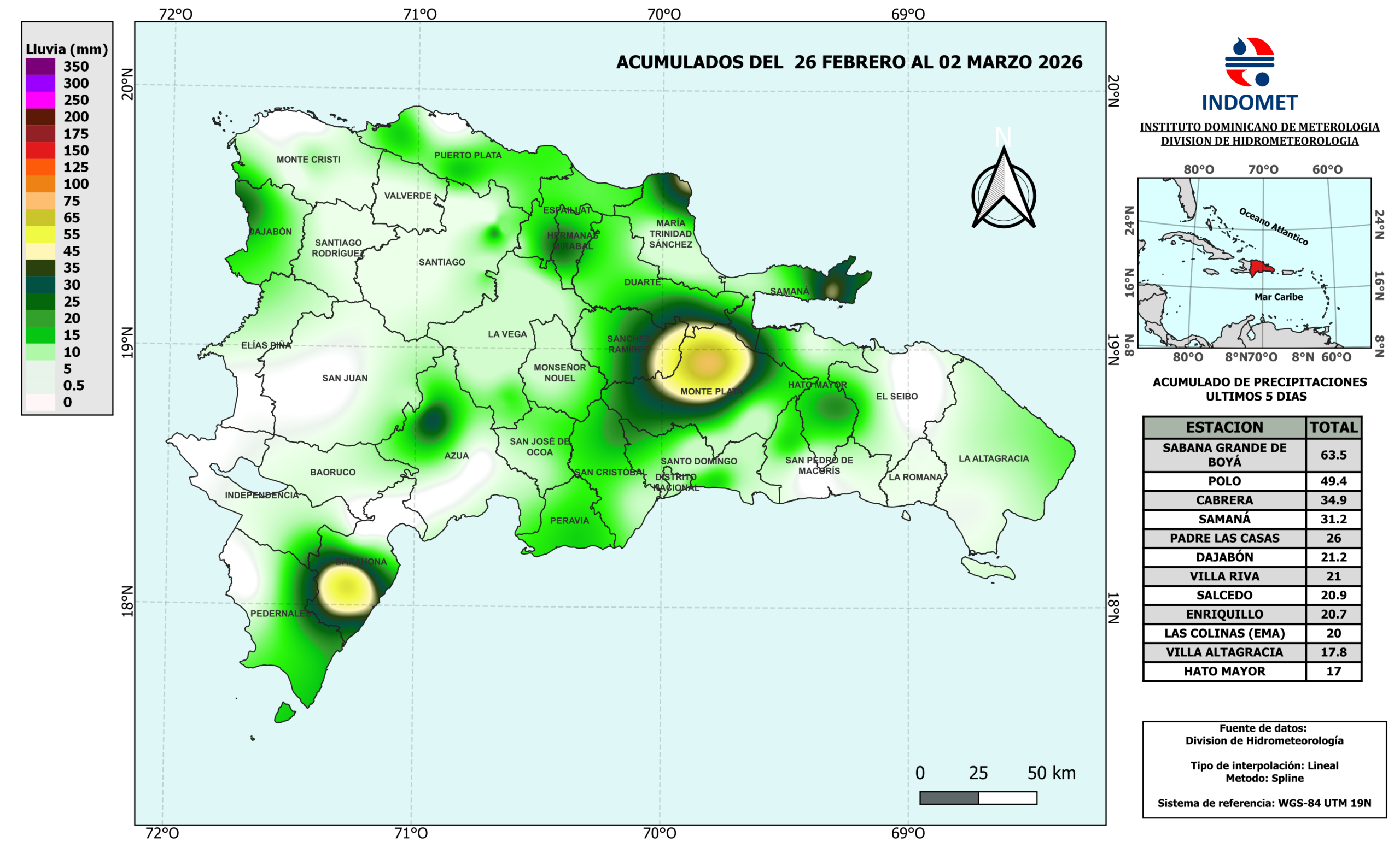 Mapa de Precipitaciones en 5 días: 02 de Marzo del 2026
