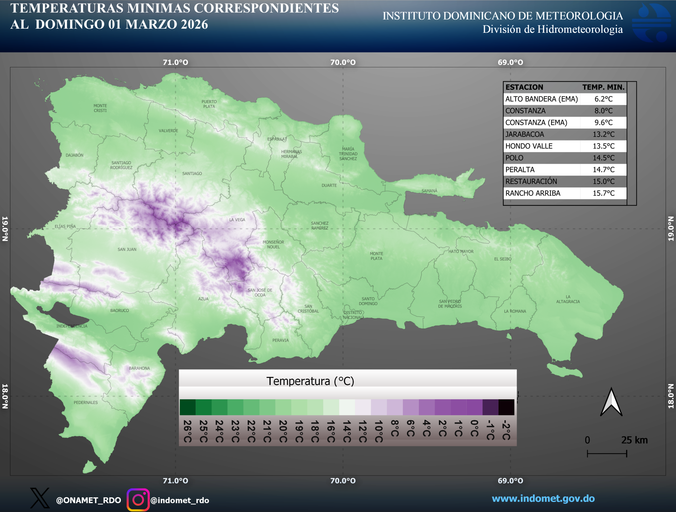 Mapa de Temperatura Minima 26 de Febrero del año 2026